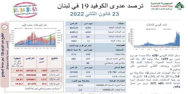 سجلت وزارة الصحة اللبنانية 13 وفاة جديدة و6381 إصابة بفيروس كورونا خلال الساعات الأربع والعشرين الماضية.