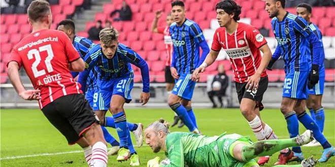 فاز فريق اياكس أمستردام على مضيفه بي إس في آيندهوفن بهدفين مقابل هدف واحد في المباراة التي جمعتهما اليوم ضمن منافسات الدوري الهولندي لكرة القدم.