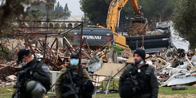 أدانت سورية بأشد العبارات ما تقوم به قوات الاحتلال الإسرائيلي من هدم وتدمير إجراميين لممتلكات الشعب الفلسطيني مجددة دعوتها المجتمع الدولي للاضطلاع بمسؤولياته وحماية الشعب الفلسطيني ووقف الجرائم الإسرائيلية فوراً.