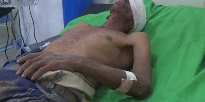 وذكر موقع المسيرة نت أن “المواطن اصيب خلال عمله في مزرعته بضواحي مدينة تعز بشظايا صاروخ أطلقته طائرات العدوان” مشيراً إلى أن القصف أسفر أيضا عن نفوق عدد من المواشي في المزرعة.