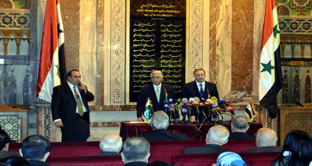 وقال بخاري إن باكستان “تثمن الانفتاح الذي أظهرته القيادة السورية لحل الأزمة عبر الحوار وتأمل بأن يحل السلام في سورية” معربا عن أمله بأن “تخرج سورية من أزمتها ويعود السلام والاستقرار إليها”.