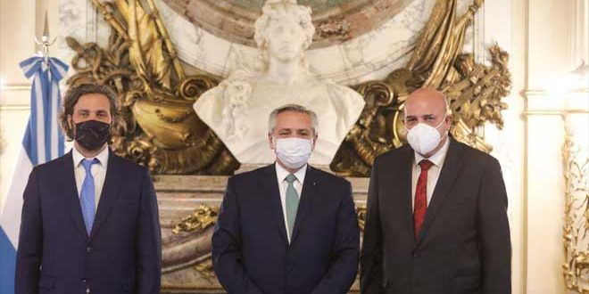 تقبل الرئيس الأرجنتيني البيرتو انخل فرنانديز أوراق اعتماد الدكتور سامي سلامة سفيراً للجمهورية العربية السورية لدى الأرجنتين وذلك بحضور سانتياغو كافيير وزير الشؤون الخارجية والعبادات.