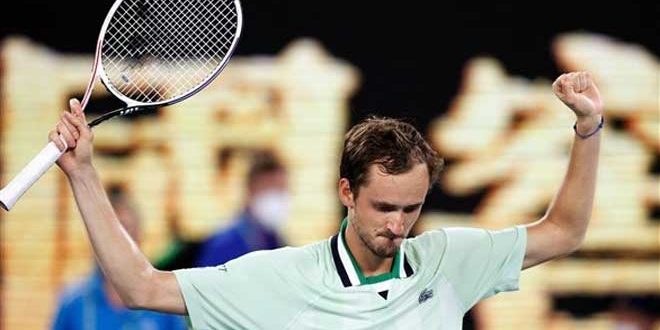 وسيواجه ميدفيديف في الدور المقبل لأولى بطولات غراند سلام الأربع الكبرى اليوناني ستيفانوس تسيتسيباس الذي فاز بدوره على منافسه الإيطالي يانيك سينير.