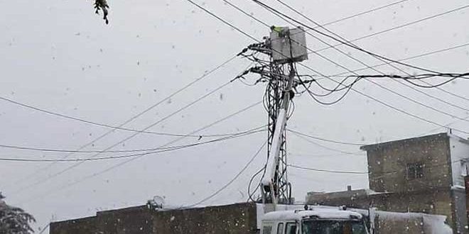 وأشار خضور إلى أن ورشات الكهرباء بذلت جهوداً كبيرة للوصول إلى مناطق الأعطال وإصلاحها بالرغم من كثافة الهطولات الثلجية وصعوبة العمل لافتاً إلى أنه تم حالياً إصلاح جميع الأعطال وإعادة التيار الكهربائي إلى المواطنين.