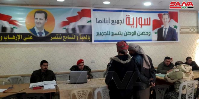 وتتواصل خلال الأيام القادمة عملية التسوية في مركز العامل بمدينة دير الزور لإتاحة الفرصة أمام كل من لم تتلطخ يداه بالدماء للعودة إلى حضن الوطن.