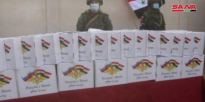 وزع مركز التنسيق الروسي سلات غذائية على الأهالي الأكثر احتياجاً في عدد من قرى ريف دير الزور الشمالي.