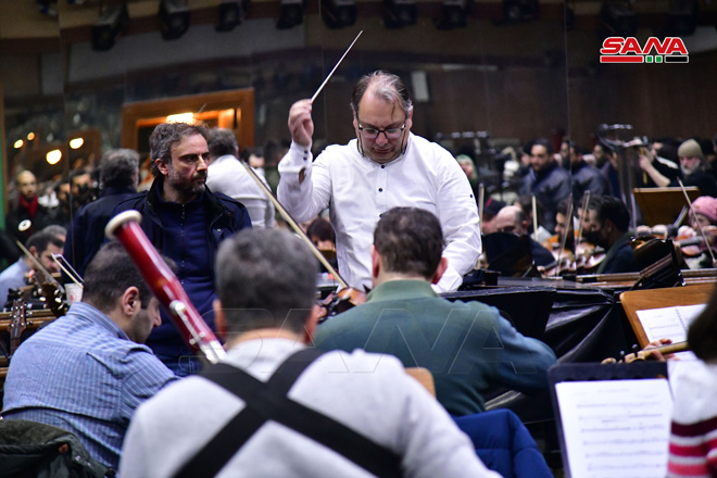 فريق العمل الموسيقي (الرابسودي السوري) يعرض تحضيراته قبيل توجهه إلى دبي 24-1-2022