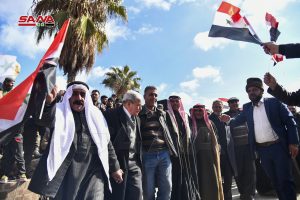 ولفت مراسل سانا إلى أن المشاركين من وجهاء المنطقة والمواطنين والراغبين بالتسوية رفعوا العلم الوطني ورددوا هتافات تحيي الجيش العربي السوري وتدعو الجميع إلى طي صفحة الماضي والبدء بحياة جديدة بإرادة وتصميم على بناء ما دمره الإرهاب معربين عن ارتياحهم لإنجاز هذه التسوية بما يؤكد أهميتها وفاعليتها.