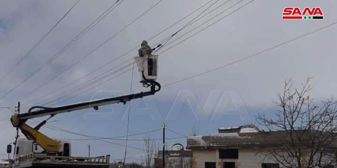 وبذلت ورشات وزارة الكهرباء مؤخراً جهوداً كبيرة للوصول إلى مناطق الأعطال وإصلاحها بالرغم من كثافة الهطولات الثلجية وصعوبة العمل في العديد من المحافظات ولا سيما في ريفي حمص الغربي والسويداء وأنجزت إصلاح أعطال شبكة الكهرباء الناجمة عن الأحوال الجوية السائدة وإعادة التيار الكهربائي إلى المواطنين.