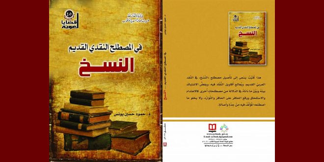واستعرض يونس عدداً من المصطلحات التي تقع في إطار النسخ كالاهتدام /ويستخدم فيه الشاعر جزءاً من بيت قاله غيره مع تغيير في اللفظ/ ووقع الحافر على الحافر والتواتر والانتحال وسرقة اللفظ والمعنى إضافة إلى موضوعات أخرى وردت في الكتاب الذي صدر عن الهيئة العامة السورية للكتاب ويقع في 104 صفحات من القطع الصغير ضمن سلسلة قضايا لغوية.