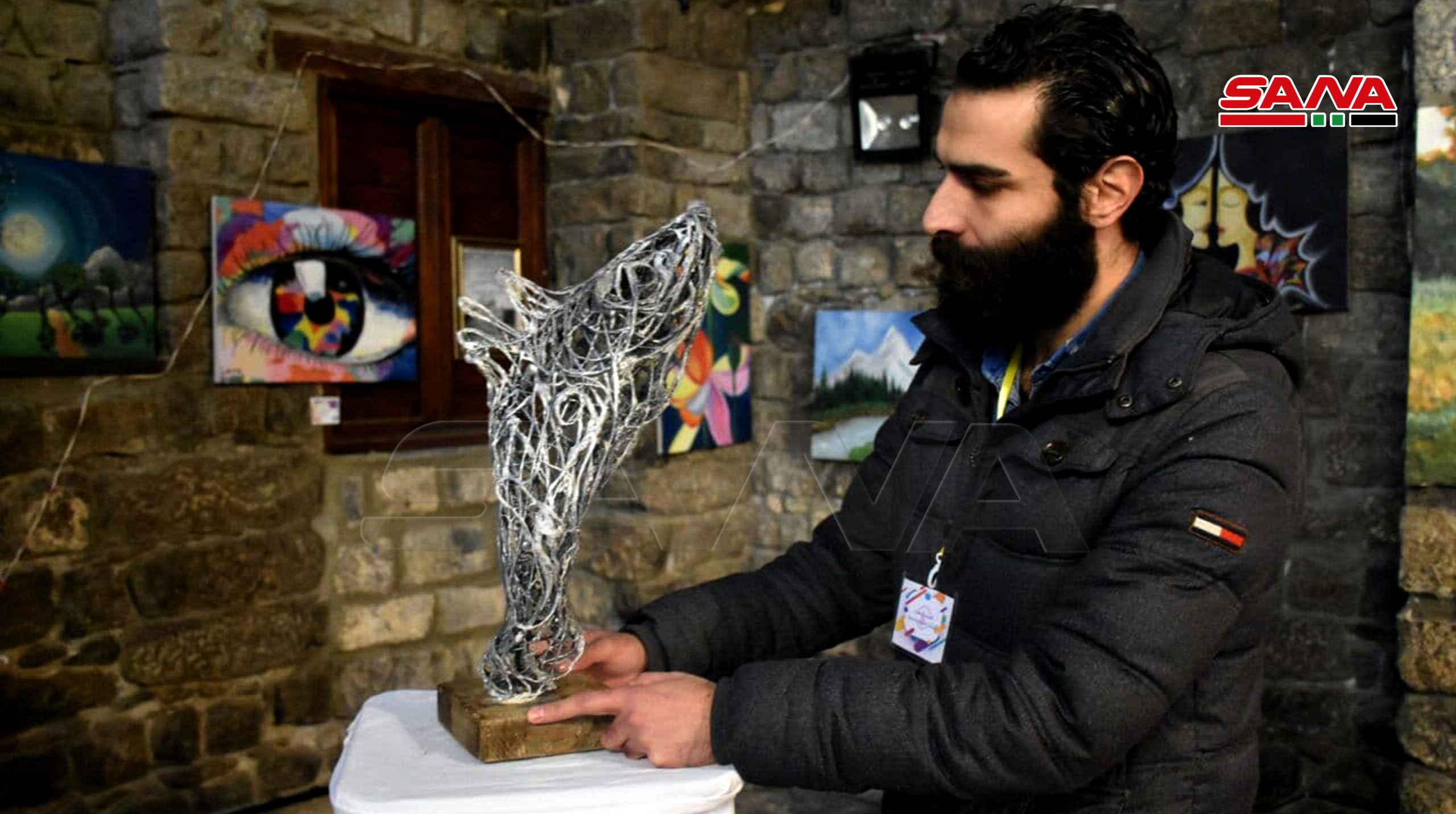 واستخدم مدرب النحت الشاب خلدون شدود خريج كلية الفنون الجميلة خردة المعادن في تشكيل مجسمات بلمسة فنية كما استخدم في التشكيل مادة الجبص.