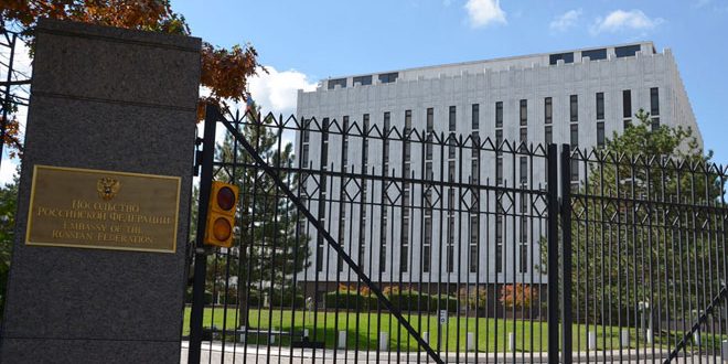 وحثت السفارة في بيان اليوم الولايات المتحدة على إجبار كييف على الوفاء بالتزاماتها فيما يخص اتفاقات مينسك مشيرة إلى أن روسيا ليست طرفاً في النزاع.