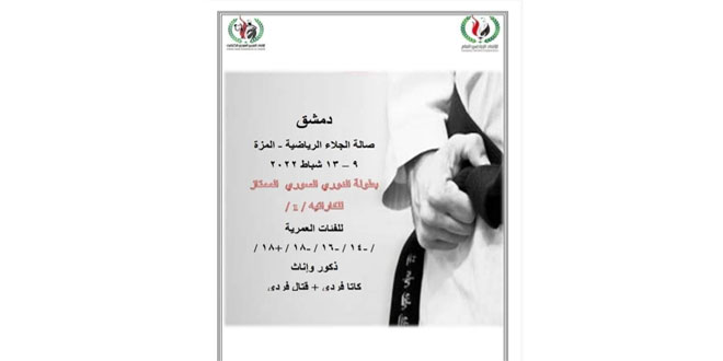 يقيم اتحاد الكاراتيه بطولة الدوري السوري الممتاز للفئات العمرية تحت (14 و16 و18 وفوق 18) سنة للذكور والإناث في منافسات الكاتا الفردي والقتال الفردي في التاسع من الشهر الحالي وتستمر حتى الثالث عشر منه في صالة الجلاء الرياضية بدمشق.