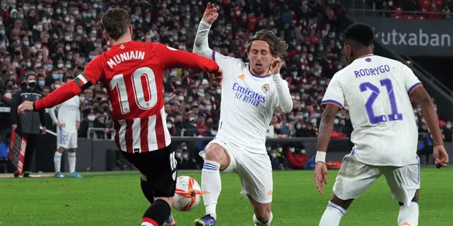 فاز أتليتيك بيلباو على ريال مدريد بنتيجة 1-صفر ليتأهل إلى الدور قبل النهائي لكأس ملك إسبانيا لكرة القدم.