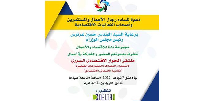 وأوضح الرئيس التنفيذي لمجموعة دلتا للاقتصاد والأعمال المنظمة للملتقى غياث شماع في تصريح لمندوب سانا أن الملتقى سيناقش رؤية الحكومة ووجهات نظر رجال الأعمال والصناعيين والمنظمات الداعمة للأعمال من غرف الصناعة والتجارة والسياحة والزراعة وأصحاب الأعمال والمستثمرين وضيوف الملتقى إلى جانب عرض آراء الخبراء والمختصين من الأكاديميين فيما يتعلق بجوانب دعم مشاريع الاستثمار وتشجيعه بهدف التوصل لمخرجات صحيحة وبناءة.