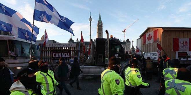 يذكر أن سائقي الشاحنات يحتلون شوارع العاصمة الكندية منذ أكثر من أسبوع ويطلقون أبواق شاحناتهم في تظاهرة يطلقون عليها اسم “قافلة الحرية” احتجاجاً على قوانين التطعيم الالزامي مطالبين بعودة الحياة إلى ما كانت عليه قبل الوباء.