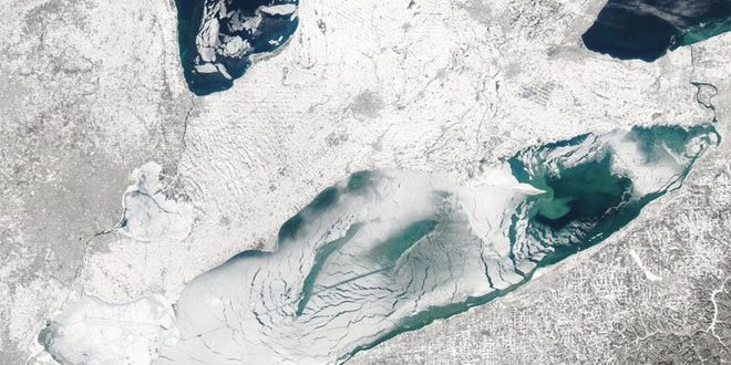 وحذرت خدمة الأرصاد الجوية في مدينة كليفلاند الأمريكية في وقت سابق من أن الرياح القوية قد تتسبب في انفصال الجليد عن شاطئ البحيرة.