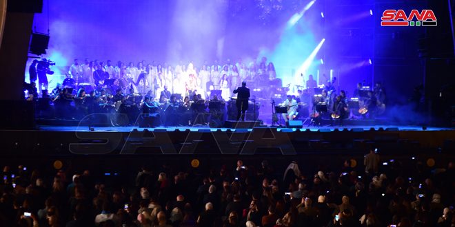 محملين بالحب والسلام لشعوب العالم قدم 100 موسيقي ومغن سوري العمل الموسيقي الملحمي “الرابسودي السوري” بتوقيع الموسيقي إياد الريماوي وقيادة المايسترو ميساك باغبودريان على مسرح منصة “اكسبو 2020 دبي” كجزء من البرنامج الثقافي الذي ينظمه الجناح السوري بالتعاون مع الأمانة السورية للتنمية وبرعاية شركة أجنحة الشام.