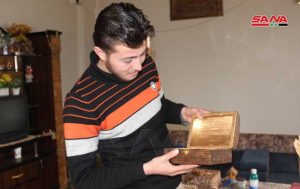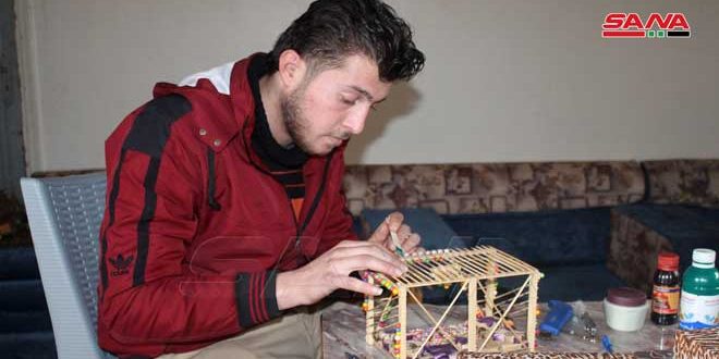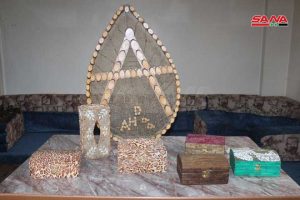 الشاب المسالمة قال لمراسل سانا: أطمح لامتلاك آلة للعمل ومحل لتسويق الأعمال على الشكل الأمثل مبيناً أن تصاميم الأعمال يصنعها بنفسه دون مساعدة أحد.