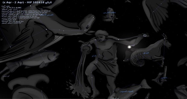 والوصف العلمي نجمتان من برج الدلو هما ميو وإبسيلون الدلو الألمع هو إبسيلون والدلو ذو القدر الظاهري 8ر3 وعلى بعد 230 سنة ضوئية 2178 تريليون كم وهذا النجم أكبر من شمسنا بـ 3 مرات وبحرارة تبلغ 13 ألف درجة.