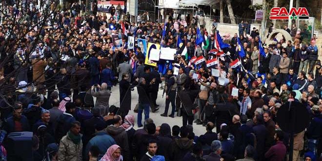وأشار مدير فرع جامعة الفرات الدكتور جمال العبد الله في تصريح لمراسل سانا إلى أن الطلبة والكوادر التعليمية والأهالي وقفوا للتنديد واستنكار الاعتداءات على المنشآت التعليمية وتدميرها من قبل الاحتلال الأمريكي بشكل ممنهج وسرقة محتوياتها وحرمان الطلبة من حقهم في التعليم بعد خروج هذه الكليات عن الخدمة ومنع ميليشيا “قسد” الطلاب من دخول كلية الهندسة الزراعية لتقديم امتحاناتهم وكل ذلك خدمة لمخططات المحتل الهادفة إلى نشر الجهل والتخلف في المجتمع.