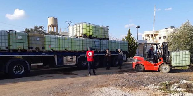 قدم فرع منظمة الهلال الأحمر العربي السوري بدرعا اليوم للمؤسسة العامة لمياه الشرب بالمحافظة 32 طناً من مادة هيبوكلوريد الصوديوم المستخدمة لتعقيم مياه الشرب.