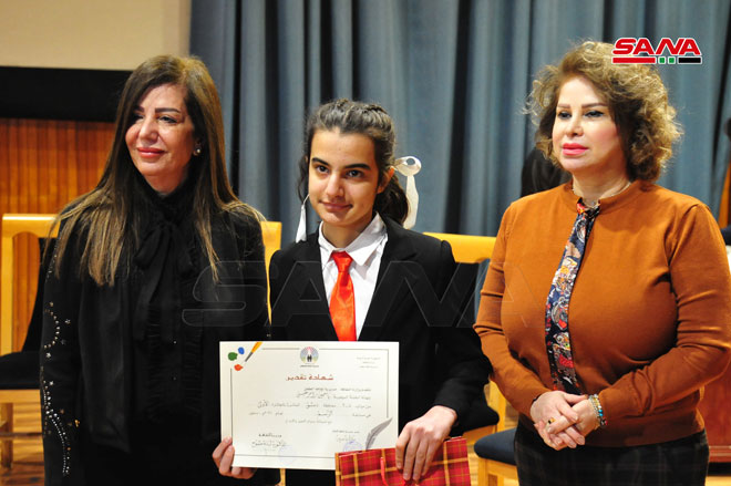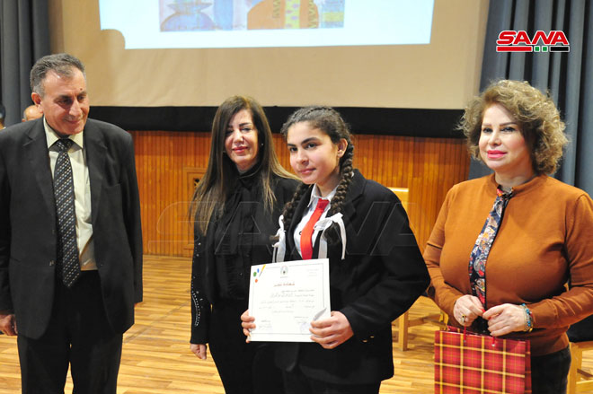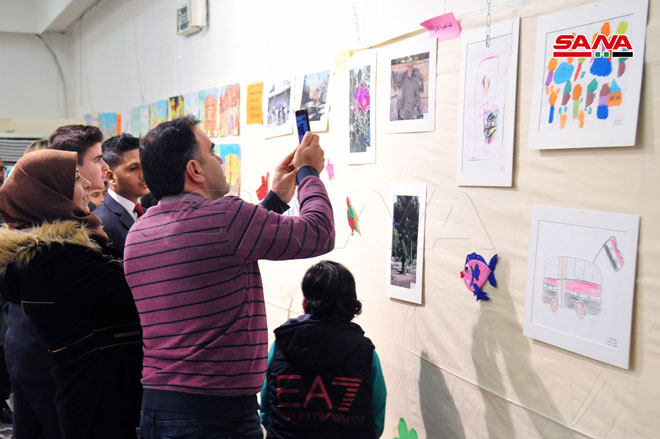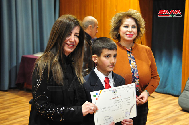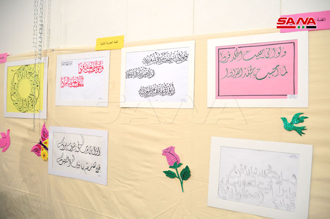 وترافقت الاحتفالية مع معرض لأعمال الأطفال الفائزين بالمسابقات الفنية (رسم-تصوير ضوئي-خط عربي) لعام 2021.