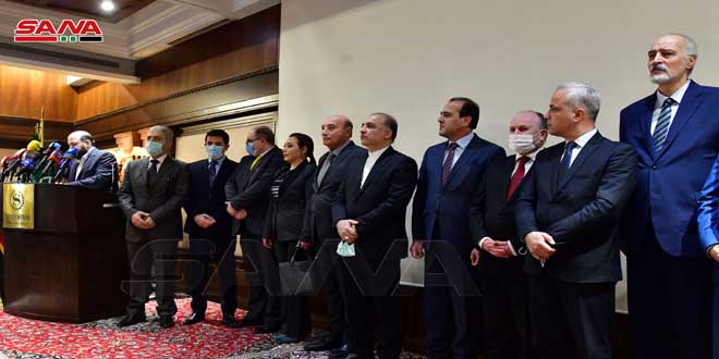 بدوره أوضح السفير الإيراني بدمشق الدكتور مهدي سبحاني أن الدعم الحتمي لمحور المقاومة والقضية الفلسطينية وتعميق التعاون مع الدول الصديقة وخاصة سورية الشقيقة هو من أولويات السياسة الخارجية لإيران لافتاً إلى أن الإرادة السياسية في كلا البلدين هي تعميق التعاون بينهما على جميع الأصعدة.