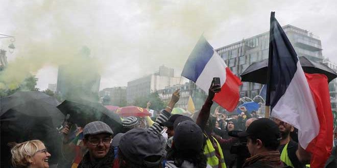 وذكرت وكالة فرانس برس أن آلاف المحتجين وصلوا من جميع أنحاء فرنسا إلى جادة الشانزليزيه في باريس وسط هتافات “حرية” قبل أن تتدخل الشرطة لإخلاء ساحة قوس النصر ثم الجادة وتوقف نحو 15 شخصا .