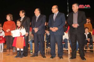 التكريم الذي جاء ضمن احتفالية بعنوان “طفولة وإبداع” وأقيم بالتعاون مع مديرية ثقافة اللاذقية شمل الفائزين في المسابقات الفنية التابعة للوزارة بمجالات الرسم والخط والتصوير الضوئي والشعر والقصة والمقال عام 2021 وهم من فئات عمرية من 7 حتى 17 عاماً.