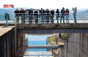واطلع الوزير رعد أيضاً على أعمال صيانة المنشآت الفنية في سد 16 تشرين الذي بلغ حجم التخزين فيه 204 ملايين متر مكعب من إجمالي التخزين الطبيعي البالغ 210 ملايين متر مكعب.