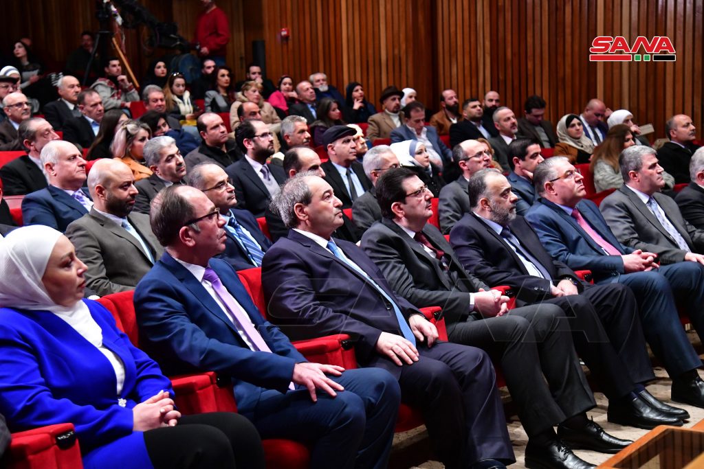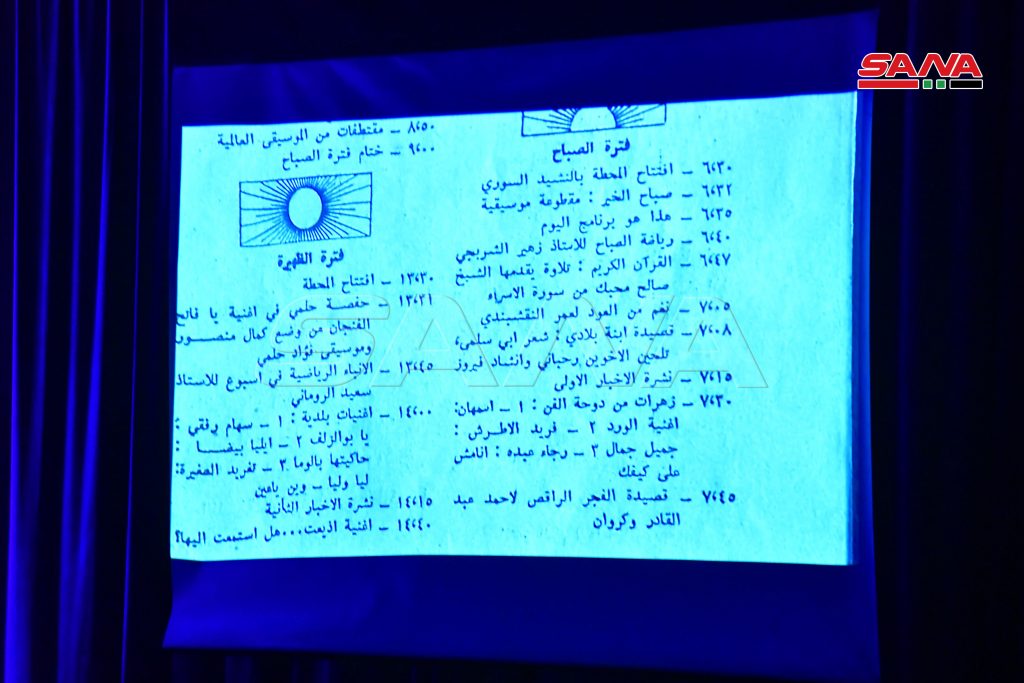 وكانت الاحتفالية التي حضرها وزير الأوقاف الدكتور محمد عبد الستار السيد ووزير التربية الدكتور دارم طباع ووزير الخارجية والمغتربين الدكتور فيصل المقداد وأعضاء من مجلس الشعب ورئيس وأعضاء المكتب التنفيذي لاتحاد الصحفيين وأسر شهداء إذاعة دمشق ومعاون وزير الإعلام أحمد ضوا والمديرون العامون للوسائل الإعلامية وحشد من الإعلاميين قد بدأت بعرض فيلم وثائقي بعنوان “إذاعة دمشق مرآة وطن” تحدث عن أبرز محطات الإذاعة بتاريخها الغني.