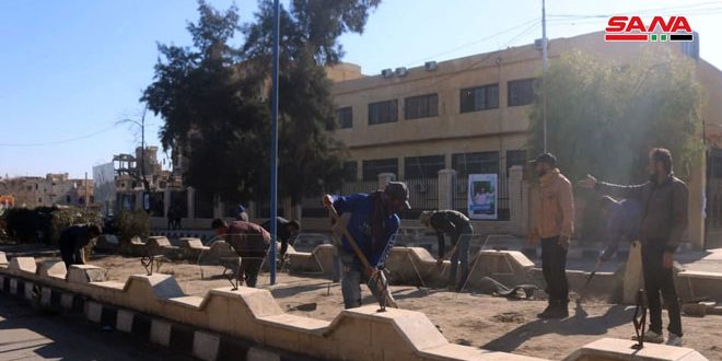 وأشار رئيس مجلس مدينة دير الزور المهندس رائد منديل إلى بدء المجلس بحملة نظافة شاملة انطلقت وفق عدة محاور لتغطية كل أحياء المدينة، مبيناً أن الحملة تتضمن أيضاً زراعة وتقليم الأشجار في الجزر الوسطية وتعزيل المصارف المطرية وترميم الطرقات.