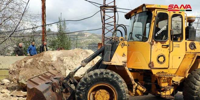 بدأت الجهات المعنية بفتح طريق وادي العيون الدريكيش عند موقع بيت فاضل بريف حماة بعد انقطاعه من جراء انهيار جزء من الجرف الجبلي أثر الأمطار الغزيرة التي هطلت على مدى ثلاثة أيام متواصلة.