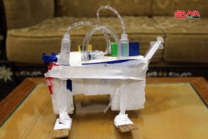 تمكن الطفل عبادى اياد الحلقي من صنع مجسمات عدة لغسالة وخلاط وسيارة صغيرة تعمل جميعها على البطارية من الكرتون المقوى ورافعة هيدروليكية من السيرنكات وذلك عبر تحويل توالف البيئة مع إضافات بسيطة إلى أدوات مفيدة تعمل على المدخرات.