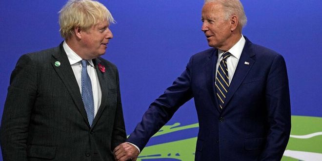 بحث رئيس الوزراء البريطاني بوريس جونسون مع الرئيس الأميركي جو بايدن إمكانية وجود فرصة للدبلوماسية لحل الأزمة حول أوكرانيا .