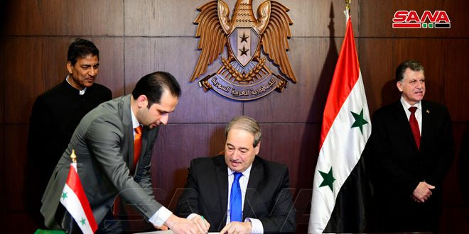 وقع الدكتور فيصل المقداد وزير الخارجية والمغتربين اليوم بحضور سفير جمهورية الهند بدمشق ماهيندر سينغ كانيال الاتفاق الإطاري لانضمام سورية إلى التحالف الدولي للطاقة الشمسية.