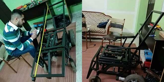 الشاب عبد السلام الذي تخرج في المعهد التقاني للحاسوب بحمص ويتابع حالياً دراسته في الجامعة الافتراضية السورية فرع تقانة المعلومات أوضح لنشرة سانا الشبابية أنه بدأ بفكرة روبوت الكرسي الذكي المتحول لسرير عن طريق تصنيع الكرسي من ثلاثة أجزاء اثنان منها متحركان والثالث ثابت ويتم تغيير زاوية الظهر والقدمين من خلال عصا التحكم أو عن طريق تطبيق يحمل على الموبايل وفيه حساسان أحدهما لقياس درجة حرارة الغرفة والثاني لقياس نبضات قلب المريض وذلك بهدف تمكين الأشخاص الذين تعرضوا للإصابة بأطرافهم السفلية من الاعتماد على أنفسهم قدر الإمكان والتنقل بكل يسر وسهولة.