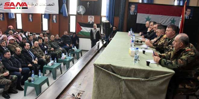 عقدت اللجنة المعنية بتسوية أوضاع المطلوبين اليوم اجتماعاً مع وجهاء العشائر في منطقة دير حافر بريف حلب الشرقي تمهيداً لافتتاح مركز تسوية جديد فيها بناء على رغبة أهالي المنطقة إضافة إلى مركز مسكنة.