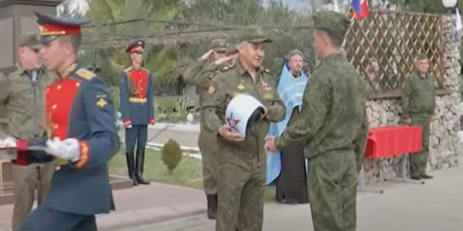 وأشارت الوزارة في بيان لها إلى أن “الوزير شويغو وخلال عملية تفتيش لقاعدة حميميم الجوية أهدى خوذة خاصة لطيار نفذ أكثر من 300 طلعة جوية”.