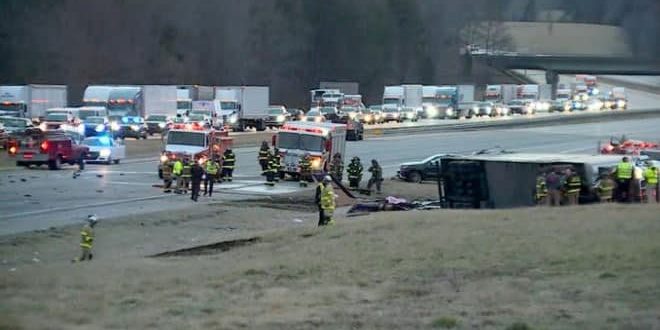 لقي طيار أمريكي مصرعه جراء تحطم طائرته على طريق سريع بولاية نورث كارولينا بعد اصطدامها بشاحنة كبيرة مكونة من قاطرة ومقطورة.