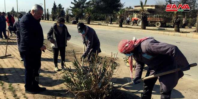 وبين رئيس مجلس المدينة المهندس سهيل رهاوي في تصريح لمراسلة سانا أن أكثر من 100 عامل من عمال النظافة والحدائق شاركوا في حملة النظافة للمدخل الغربي لحي المطار شملت تهذيب الأشجار وإزالة الأعشاب الضارة وترحيل القمامة مشيراً إلى أنه تم يوم أمس القيام بحملة مماثلة في شوارع بورسعيد ودوار السيد الرئيس وشارع القوتلي وعدد من الساحات العامة وتم تهذيب الأشجار وطلاء الرصيف للشوارع المحيطة بدوار السيد الرئيس.
