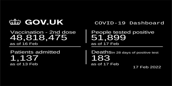 سجلت بريطانيا 183 حالة وفاة و51899 إصابة جديدة بفيروس كورونا خلال الساعات الأربع والعشرين الماضية.