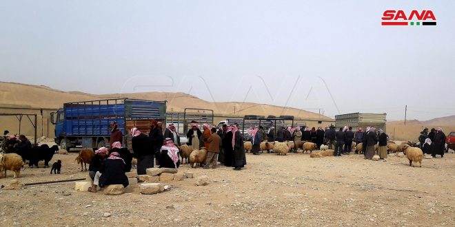 وفي تصريح لمراسل سانا أكد المشرف على السوق خالد سليمان أنه استقطب مربي الثروة الحيوانية في بادية تدمر لعرض مواشيهم للبيع والشراء أيام السبت والأربعاء من كل أسبوع عبر استقدام مئات رؤوس الأغنام والماعز والجمال.