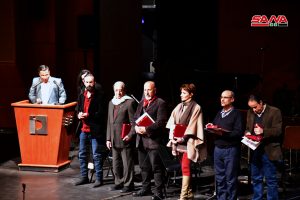 وتم تكريم لجنة تحكيم الأعمال المشاركة في المهرجان التي ضمت رفيق درب الراحل الفنان الكبير دريد لحام والفنانين التشكيليين موفق مخول وسها غانم وحسن اسماعيل وبشرى الحكيم.