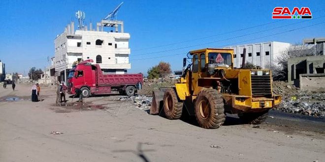 بدأت مديرية الخدمات الفنية في درعا اليوم عمليات ترحيل أنقاض وردميات من حي درعا البلد تستمر لمدة أسبوعين.
