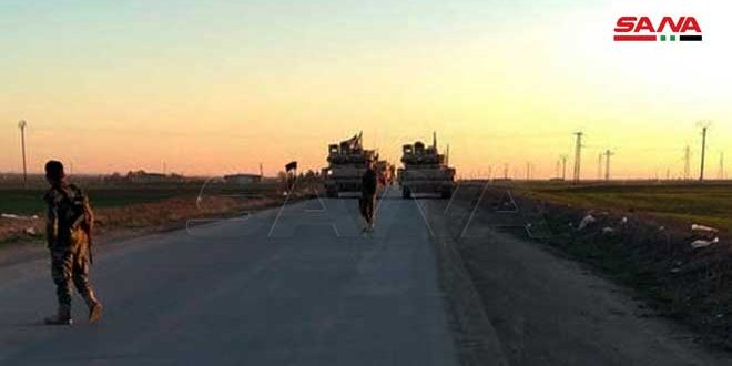 اعترض حاجز للجيش العربي السوري رتل آليات عسكرية لقوات الاحتلال الأمريكي حاول الدخول إلى قرية خويلد بريف الحسكة الشمالي الشرقي وطرده خارج المنطقة.