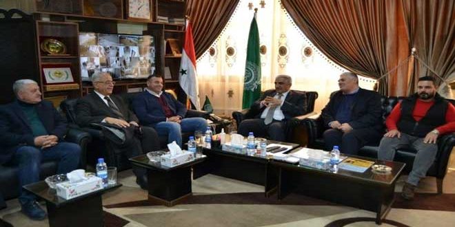 بحث المدير العام لمنظمة المركز العربي لدراسات المناطق الجافة والأراضي القاحلة “أكساد” الدكتور نصر العبيد مع رئيس اتحاد النحالين العرب فتحي البحيري المواضيع ذات الاهتمام المشترك ومجالات التعاون وسبل تطويرها وتنفيذها وأثر التغيرات المناخية في المنطقة العربية على تطوير وصناعة النحل.