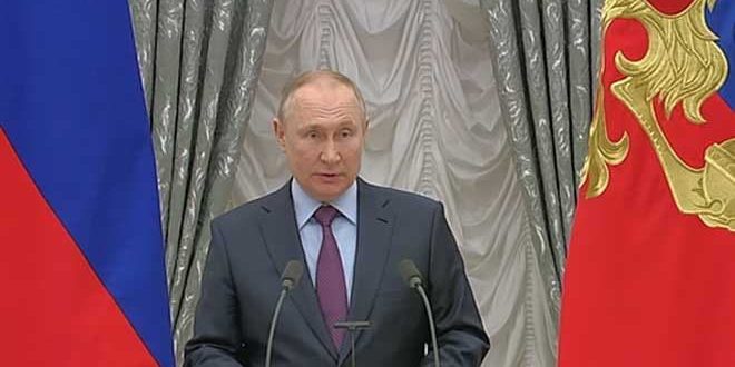 أكد الرئيس الروسي فلاديمير بوتين أن السلطات الحالية في أوكرانيا قوضت اتفاق سلام مينسك وقضت عليه قبل وقت طويل من قرار بلاده الاعتراف بجمهوريتي دونيتسك ولوغانسك.