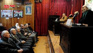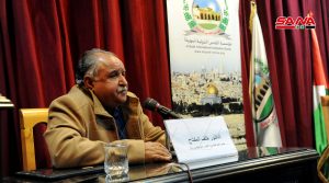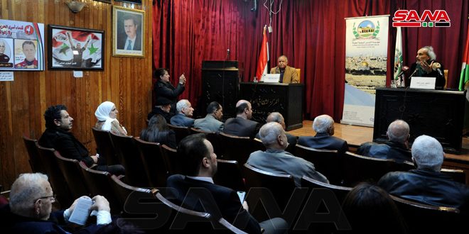 نظمت مؤسسة القدس الدولية-سورية بالتعاون مع اللجنة الشعبية لدعم الشعب الفلسطيني ومقاومة المشروع الصهيوني محاضرة بعنوان دور المثقف في مواجهة سياسة التهويد للأديب الدكتور حسن حميد.